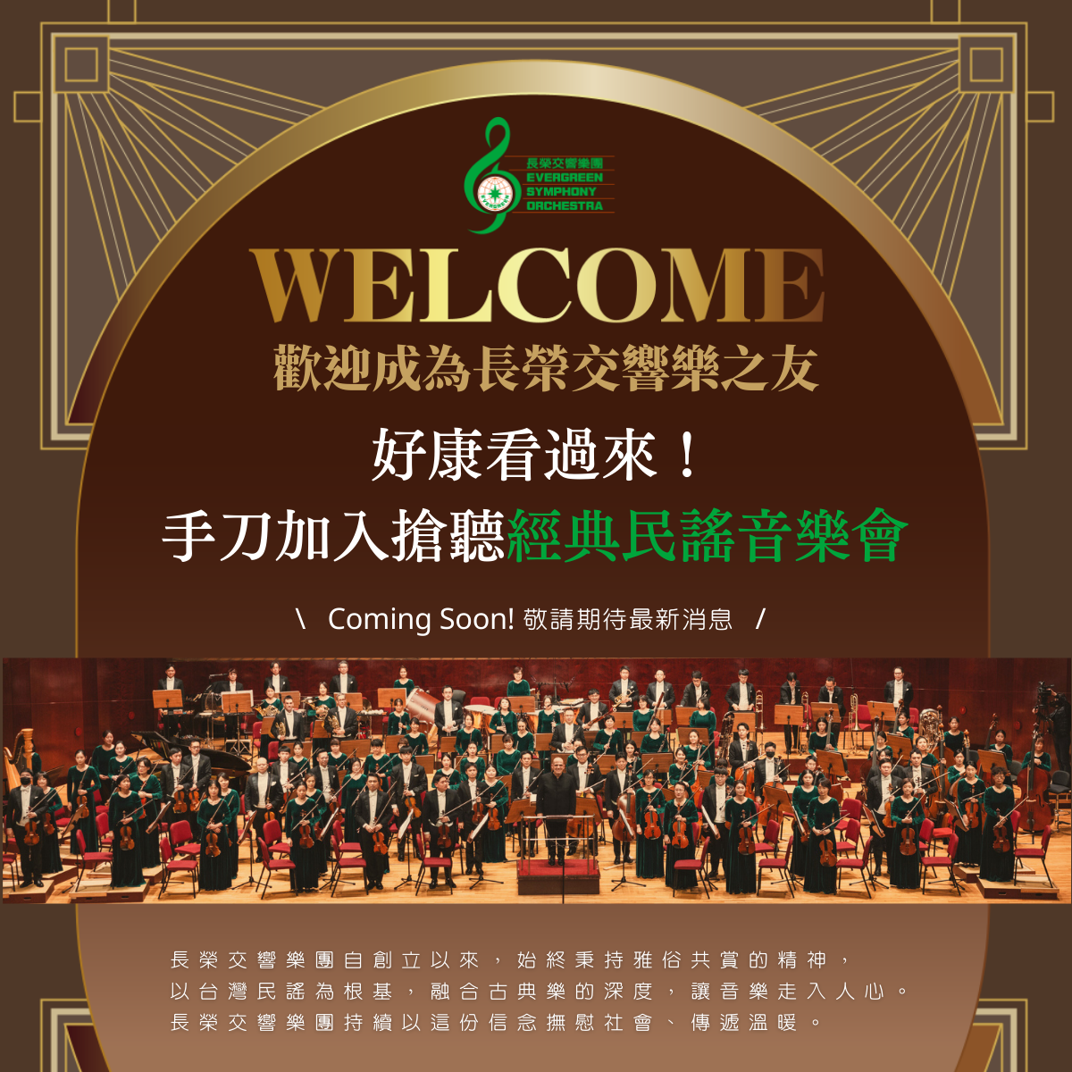 Since founding, the Evergreen Symphony Orchestra has upheld the spirit of bringing music to all, rooted in Taiwanese folk traditions and enriched with the depth of classical music. Guided by this belief, the orchestra continues to comfort society and share warmth through its performances.